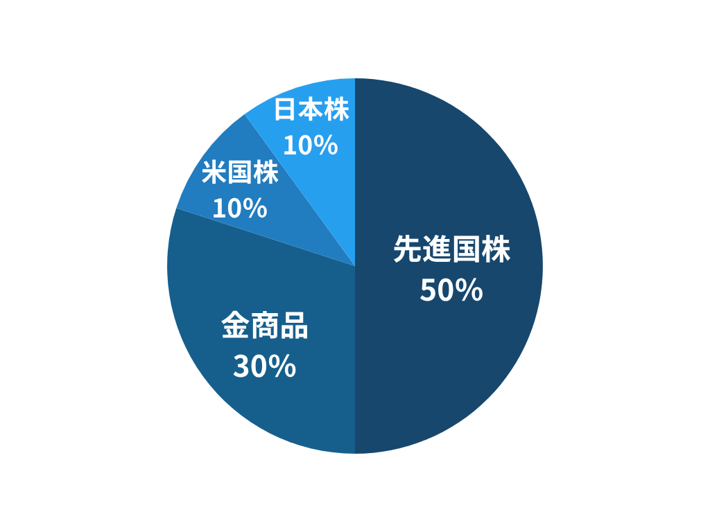 値動きの安定性が高いバリュー株中心のコアファンドに景気耐性(ディフェンシブ性)を生かしつつ、相対的に好リターンの実績を持つ分配型ファンドへ分散投資を行い収益性の向上を図りつつ準備資金(ゴール)と生活費等(ライフ)の、双方で運用目標の達成を目指します。