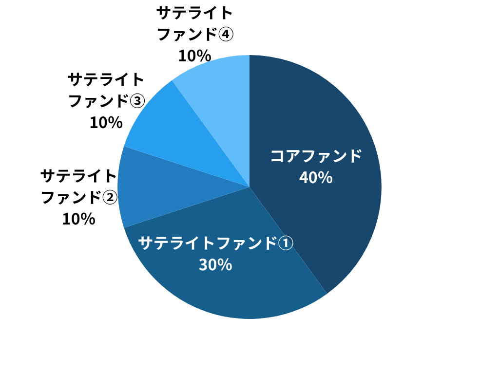 相対的に変動率が大きいグロース株中心のコアファンドに好リターンファンドであるサテライトファンドを加え、リスクを抑えつつリターンの安定を目指します。