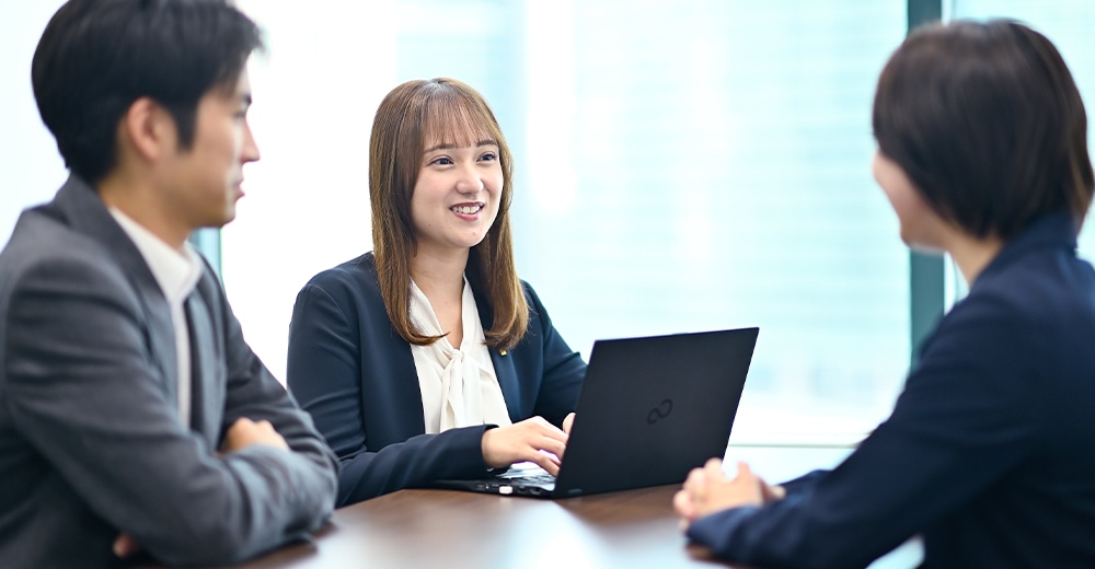 「誰かの人生に名前を残す仕事がしたい」。そう考えた学生時代、最初に志望していたのはブライダル業界でした。しかし、コロナ禍で求人は激減。そこで命の次に大切であろう資産を任せていただく仕事なら、お客さまの大事なターニングポイントに携われるのではないかと、証券会社を希望しました。アイザワ証券に入社を決めたのは、ずばり“人”です。私の話をしっかりと聞いてくれる面接官の方々や、支社訪問をした際に楽しそうに仕事の話を教えてくれた先輩方など、「この人たちと一緒に働きたい」という思いが強くなりました。入社5年目となり異動も経験した今、年齢や役職での壁がなく意見交換しやすい雰囲気は当社全体の風土であると断言できます。